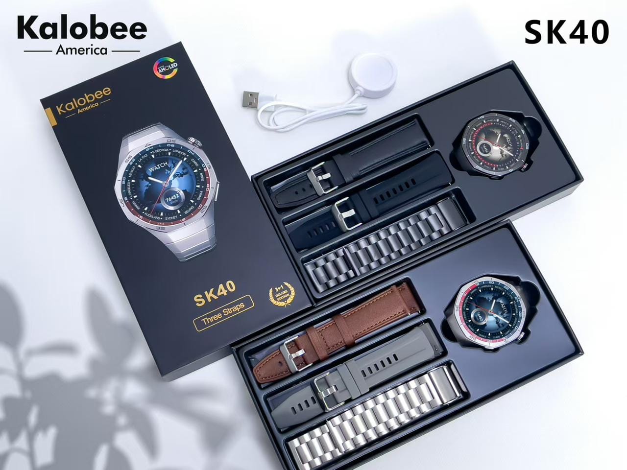 Aspect Specification / Feature Display AMOLED / HD circular display, resolution ~ 360×360 px Case & Material Metal / stainless steel construction; refined brushed / matte finish in some versions Straps Comes with 3 interchangeable straps (typically silicone, leather, metal) Battery & Charging ~ 315 mAh lithium; claimed 3‑4 days of normal use in many listings Water / Dust Resistance IP67 (splash / dust resistant) in many versions Health / Fitness Sensors & Tracking Heart rate, SpO₂ (blood oxygen), step count, sleep tracking, multiple sport modes, and sometimes additional sensors (altimeter, thermometer, gyroscope) Connectivity / Features Bluetooth calling & notifications, voice assistant, app sync (work with iOS & Android) Compatibility Works with iOS (version ~12.0 and above) & Android (version ~5.0 and above) in many listings Other Features Customizable watch faces, music / camera remote control, often includes magnetic charging, sometimes NFC / wallet support in some listings Dimensions / Body One listing notes ~ 49 × 11 mm size for SK40